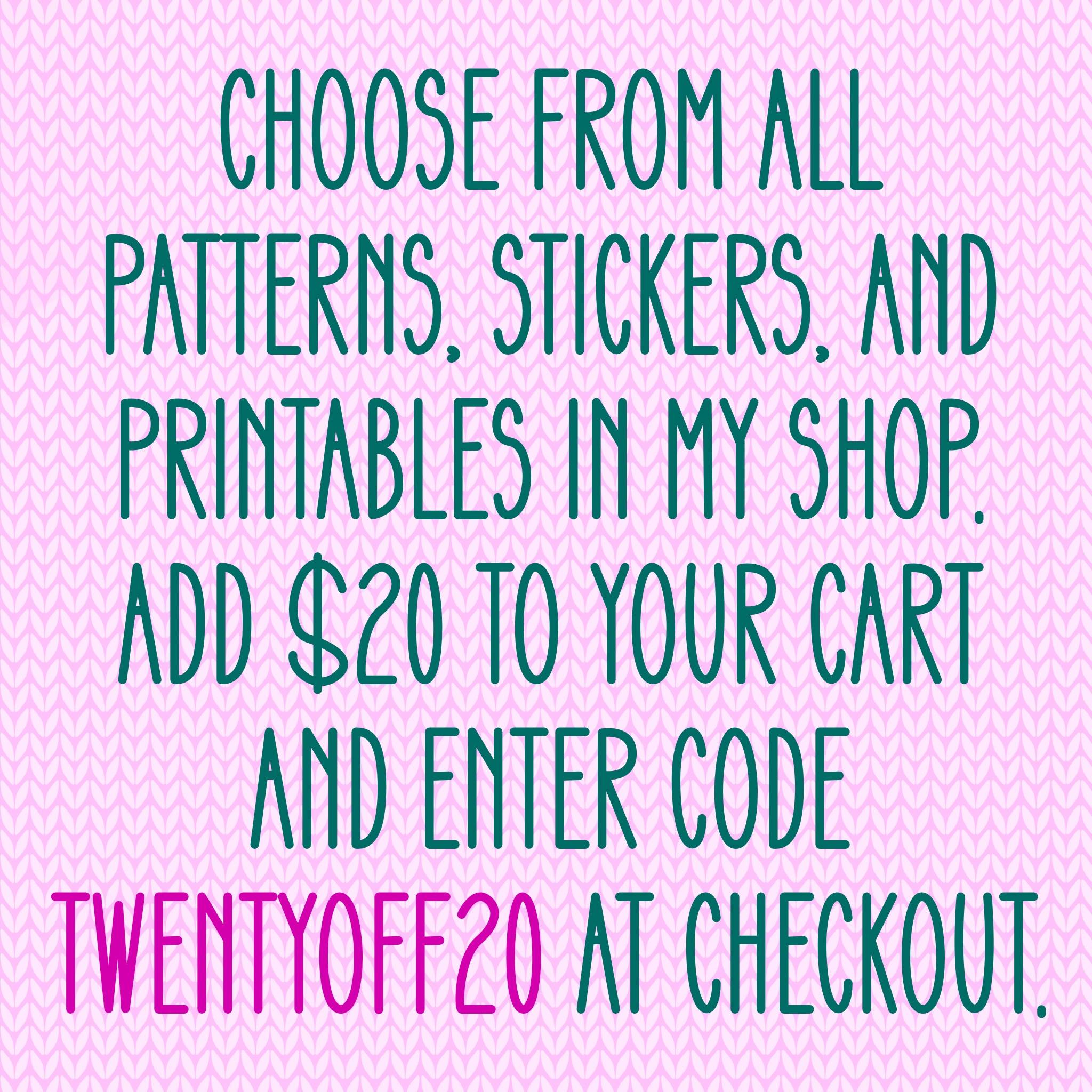 I’m working on growing my Etsy shop! One piece of advice I’m taking is to offer a discount for larger orders. You can see my shop here. Use code TWENTYOFF20 to get 20% off any order over $20.