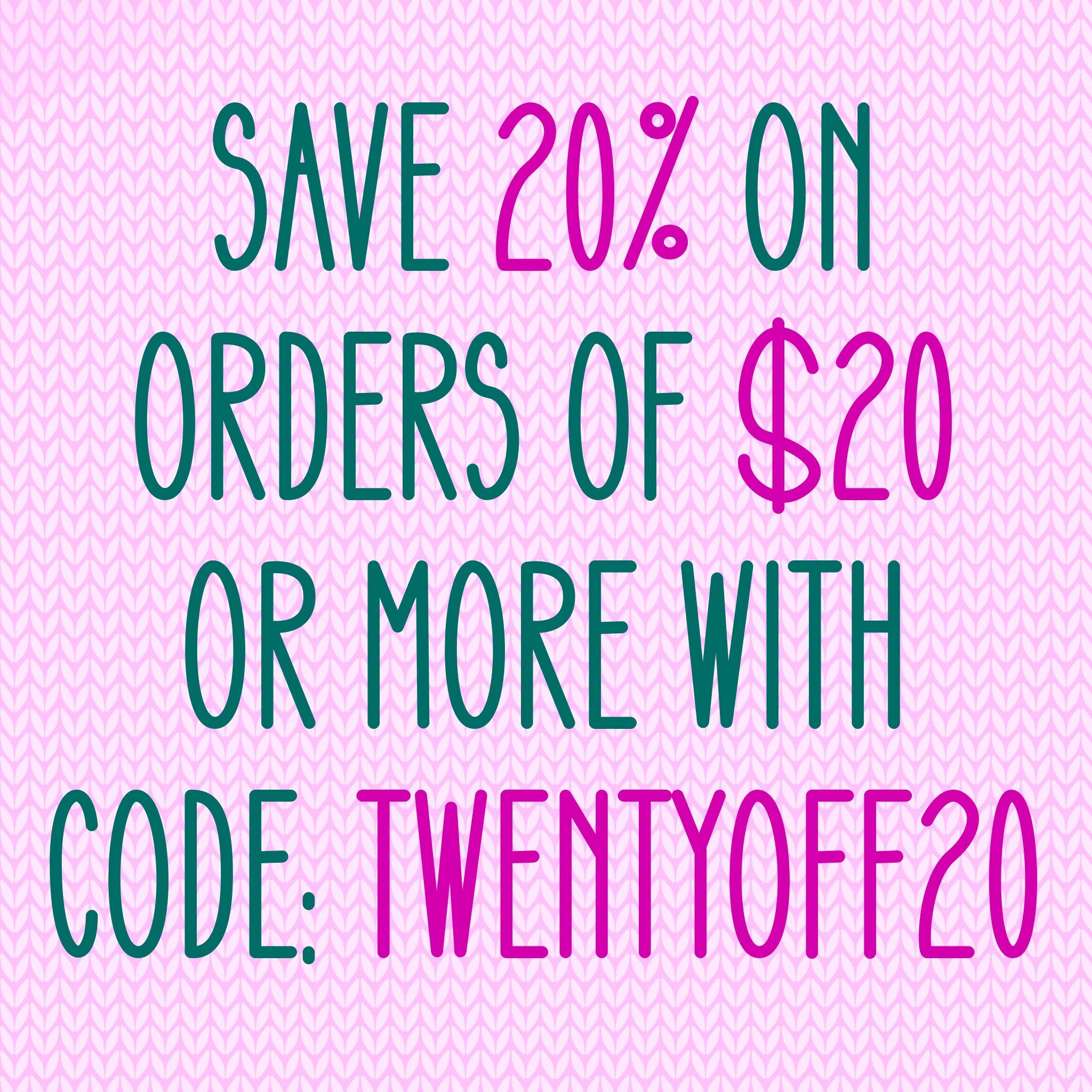 You can use the code TWENTYOFF20 to save in my Etsy shop. It’s good on everything, so you can combine patterns and stickers if you want.