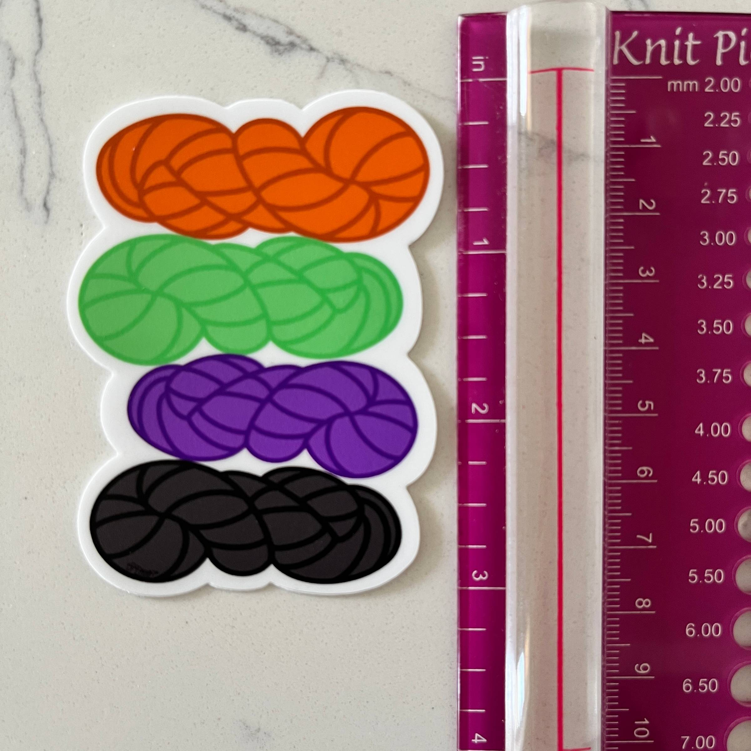 Halloween yarn! I wish I was knitting with Halloween colors right now! But I can’t because as soon as I finish writing to you, I’ve got to walk to school and get my babies! Are you too busy to knit today, too? Buy yourself a yarn sticker and see if that makes you feel better! 🤪
